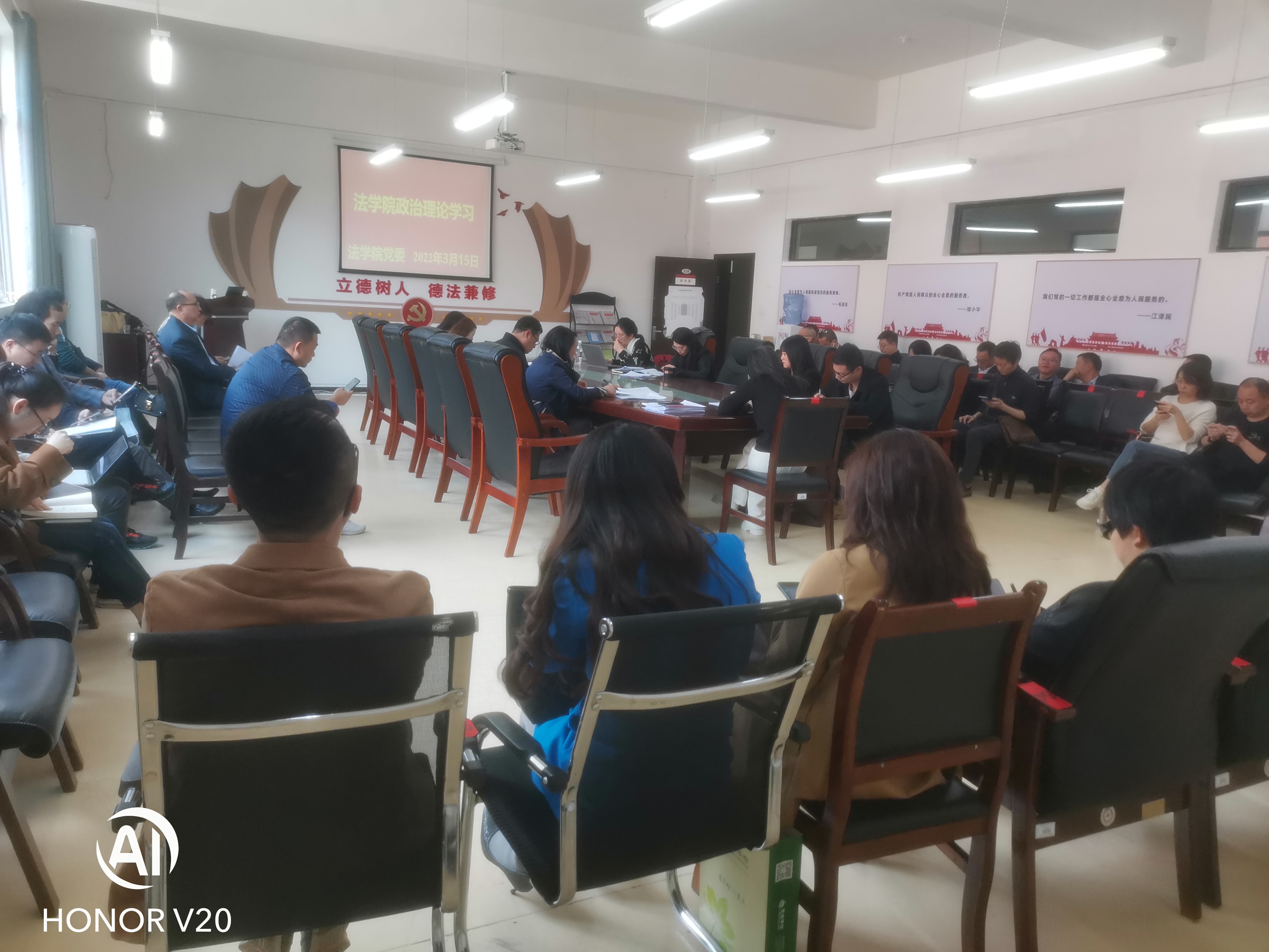 (法学院 图文/报道 徐方)2022年3月15日下午,法学院党委在文德楼A8-310会议室围绕“华体会体育(中国)hth·官方网站参加十三届全国人大五次会议内蒙古代表团审议时讲话及贵州省两会精神”专题组织召开2022年度第二次教职工政治理论集体学习集体研讨会议。院领导及全院教职工出席会议,院党委书记詹伟主持会议。