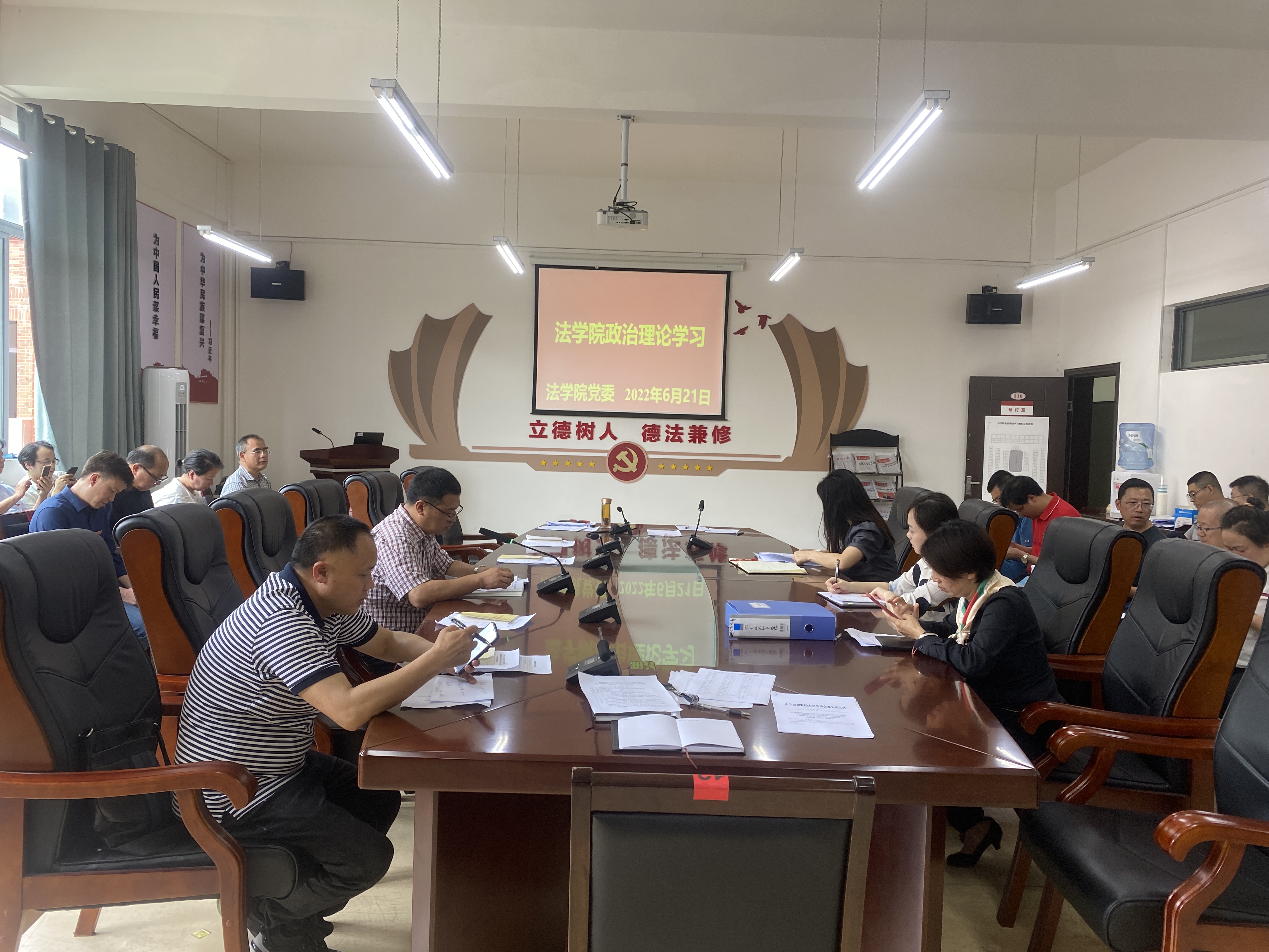 (法学院 图文/报道 徐方)2022年6月21日下午,法学院党委在文德楼A8-310会议室围绕“深入学习领会华体会体育(中国)hth·官方网站对贵州工作重要指示精神”专题组织召开2022年度第八次教职工政治理论集体学习研讨会议。院领导及全院教职工出席会议,院党委书记詹伟主持会议。