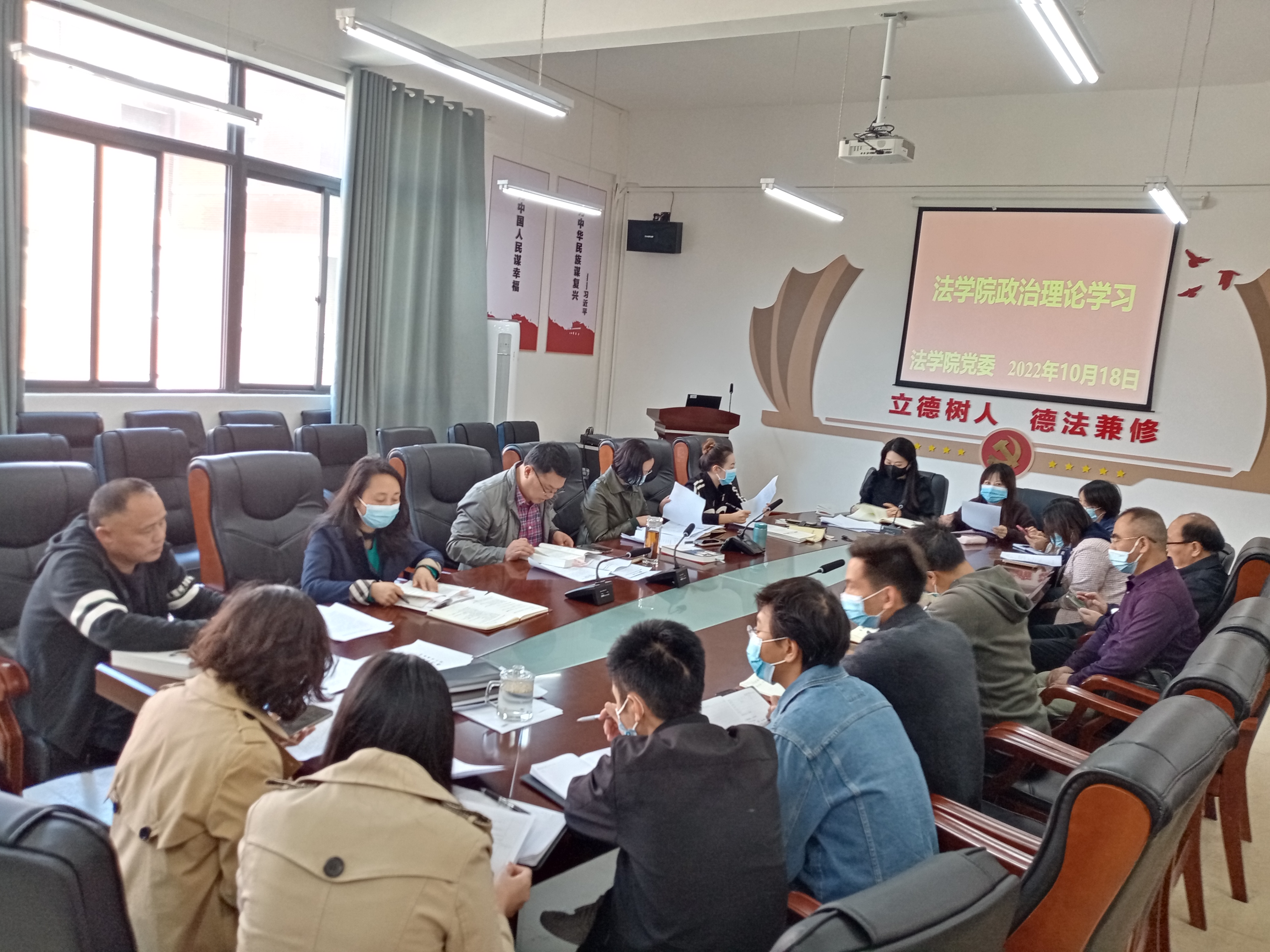 (法学院 图文/报道 徐方)2022年10月18日,法学院党委通过线上线下相结合的方式围绕“《华体会体育(中国)hth·官方网站谈治国理政》第四卷选篇暨法学院‘三统筹’工作”专题组织召开本年度第十二次教职工政治理论集体学习研讨会议。院领导及全院教职工出席会议,院党委书记詹伟主持会议。