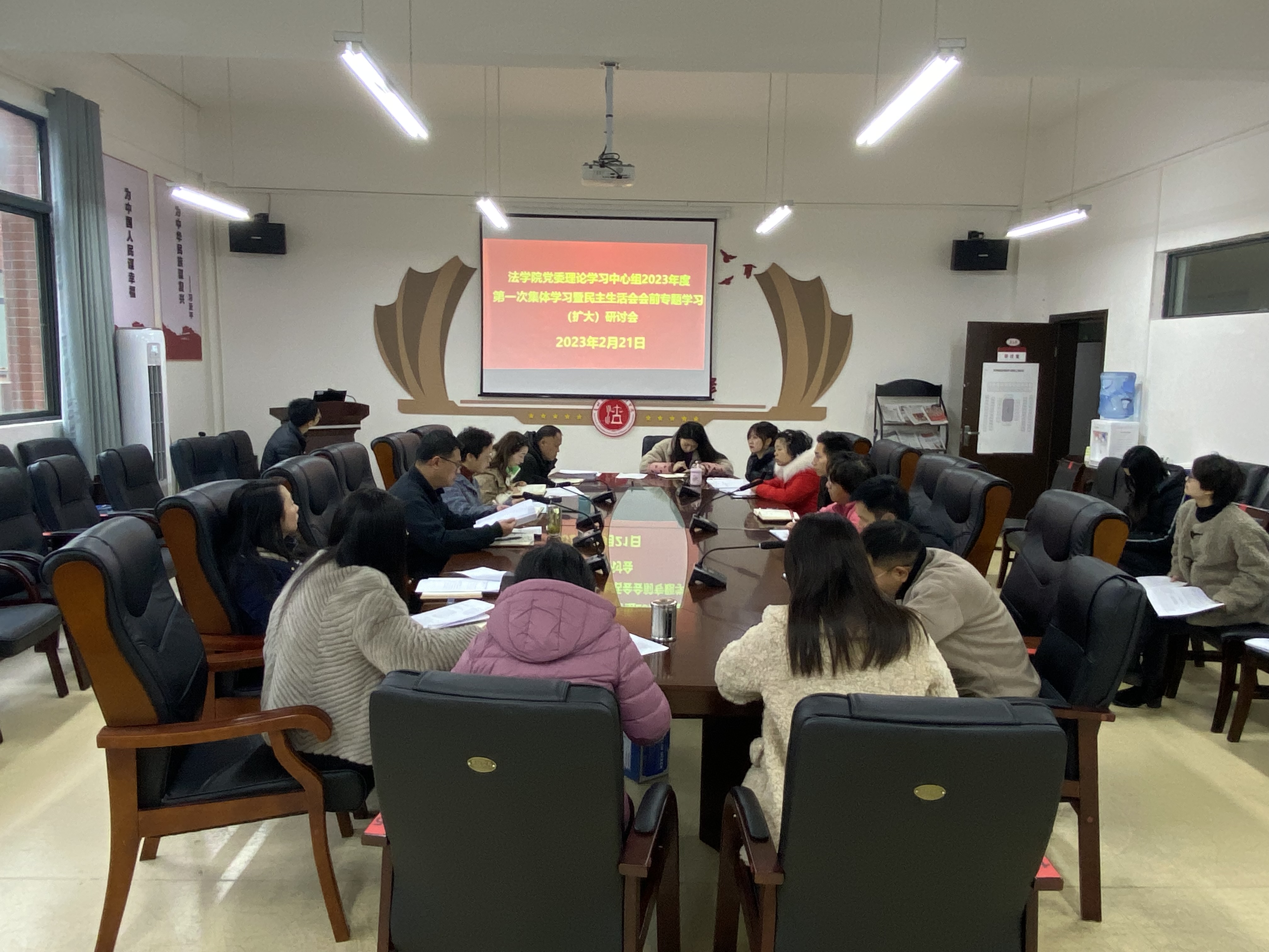 (法学院 图文/报道 徐方)2023年2月21日,法学院党委理论学习中心组在文德楼A8-310会议室召开2023年第一次集体学习暨民主生活会会前专题学习(扩大)研讨会。学院领导及全体行政人员参加会议。学院党委书记詹伟主持会议。