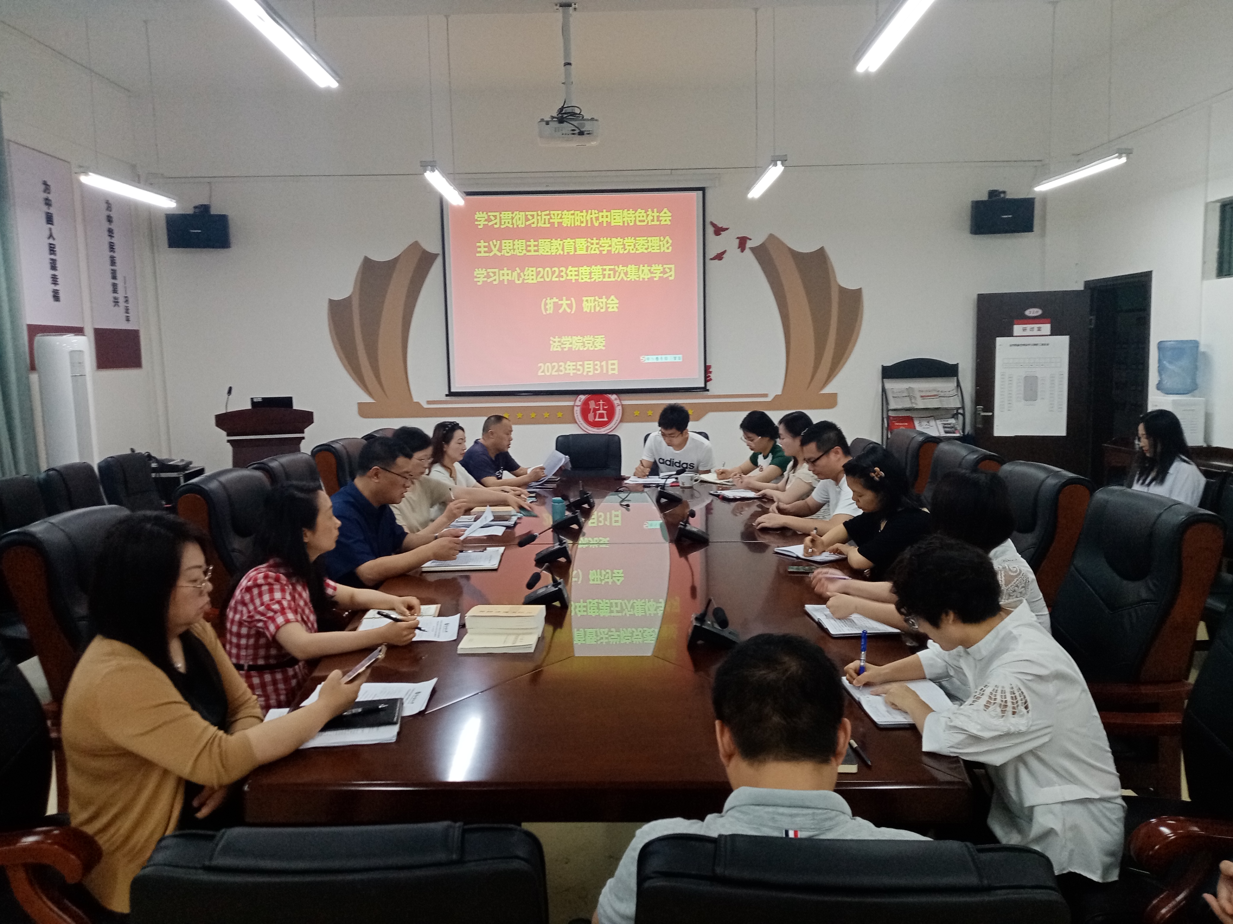 (法学院 图文/报道 徐方)2023年5月31日中午,法学院党委理论学习中心组在文德楼A8-310会议室召开学习贯彻华体会体育(中国)hth·官方网站新时代中国特色社会主义思想主题教育暨法学院党委理论学习中心组2023年度第五次集体学习(扩大)研讨会。学院领导及副科级及其以上的工作人员参加会议。学院党委书记詹伟主持会议。