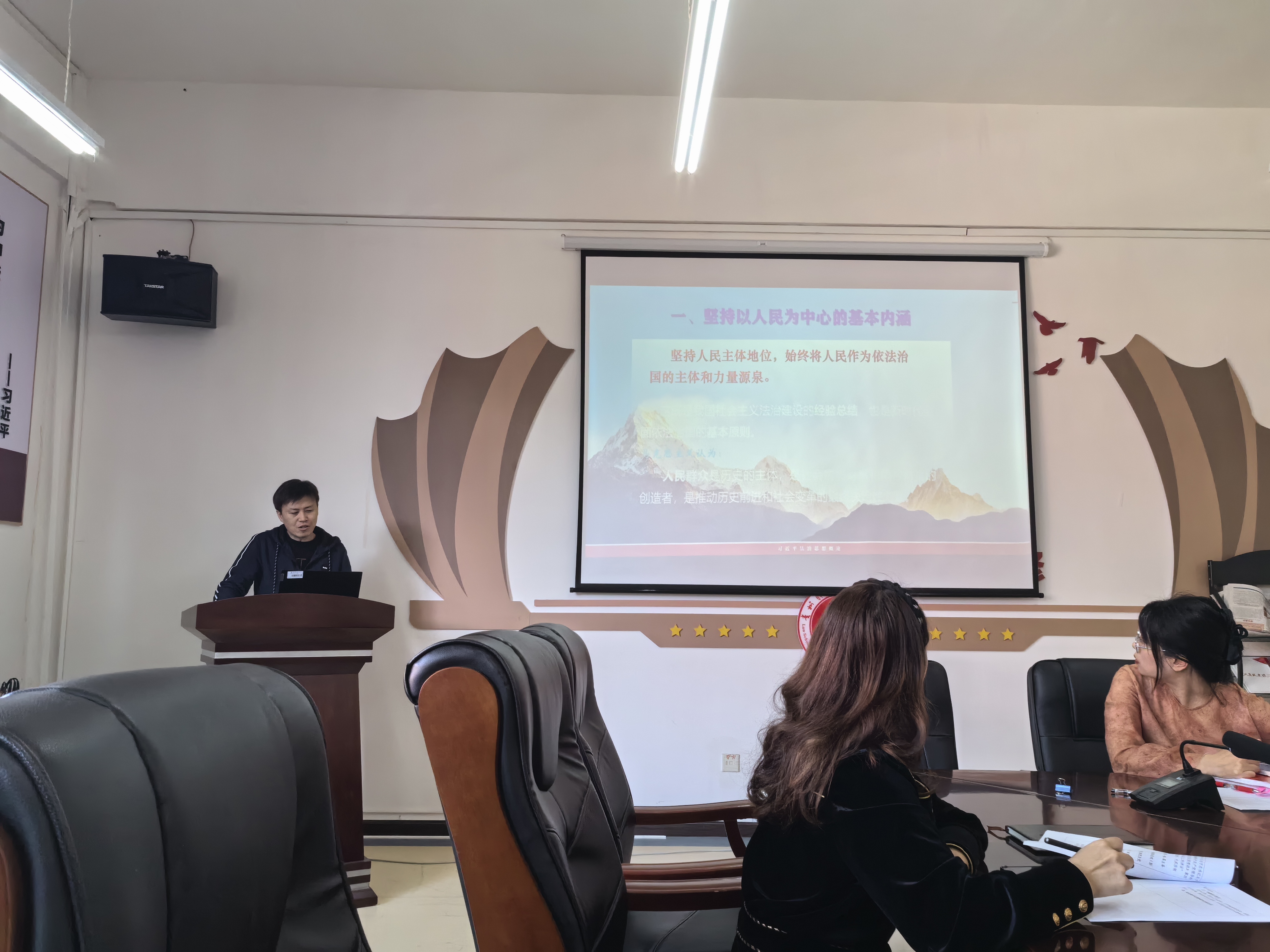 法学院党委委员、副院长宋昭澜,学生科科长郭雪,专任教师张凯在会上做专题研讨交流发言。教师何鹏做“华体会体育(中国)hth·官方网站法治思想”专题辅导报告。