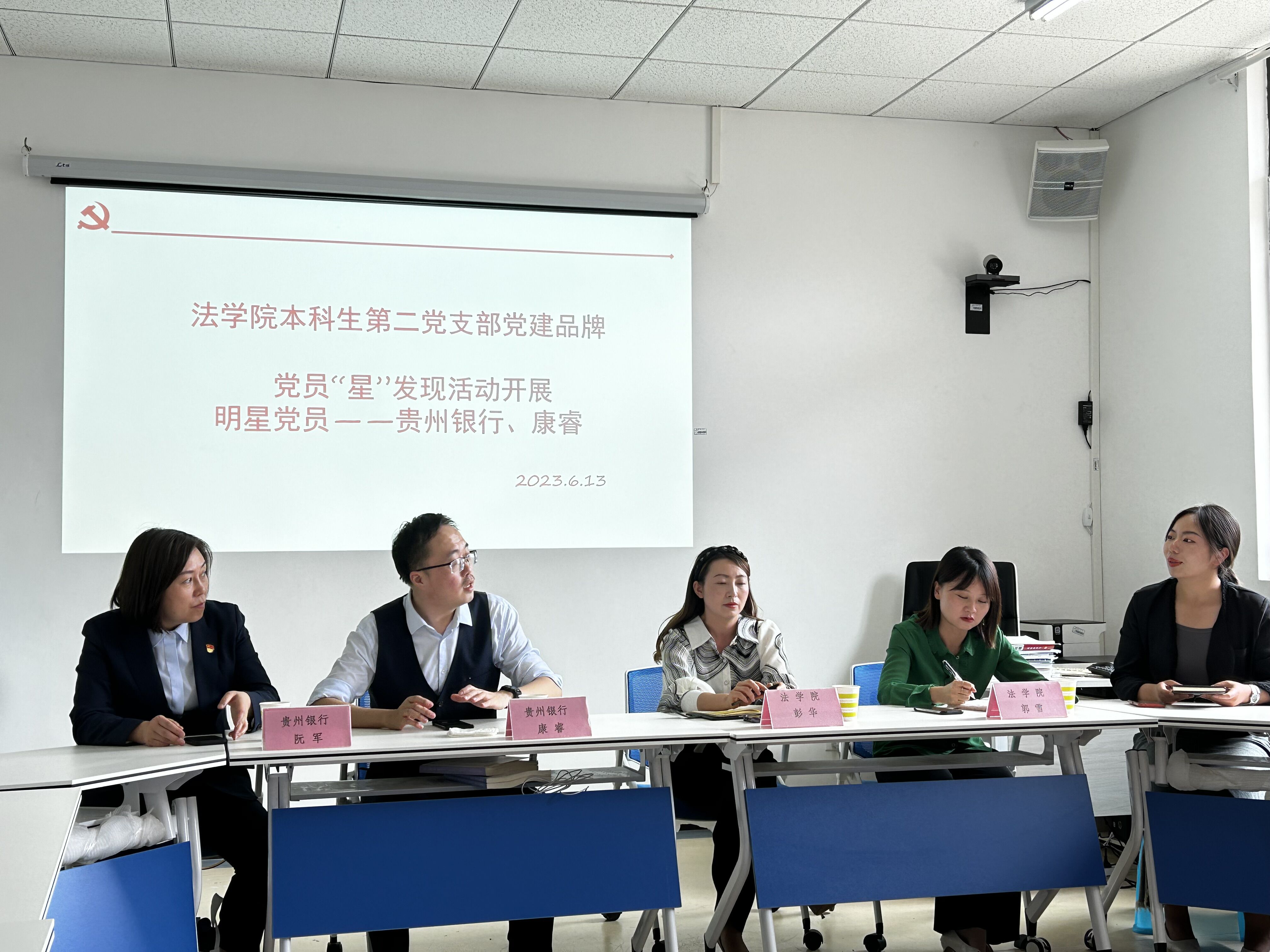 为落实学习贯彻华体会体育(中国)hth·官方网站新时代中国特色社会主义思想主题教育相关要求,切实提升在校大学生金融素养,倡导学生树立正确的价值观和消费观,2023年6月13日下午,法学院本科生第二党支部联合贵州银行总行机关第九党支部共同开展了“金融普法、护航青春”主题党日活动。