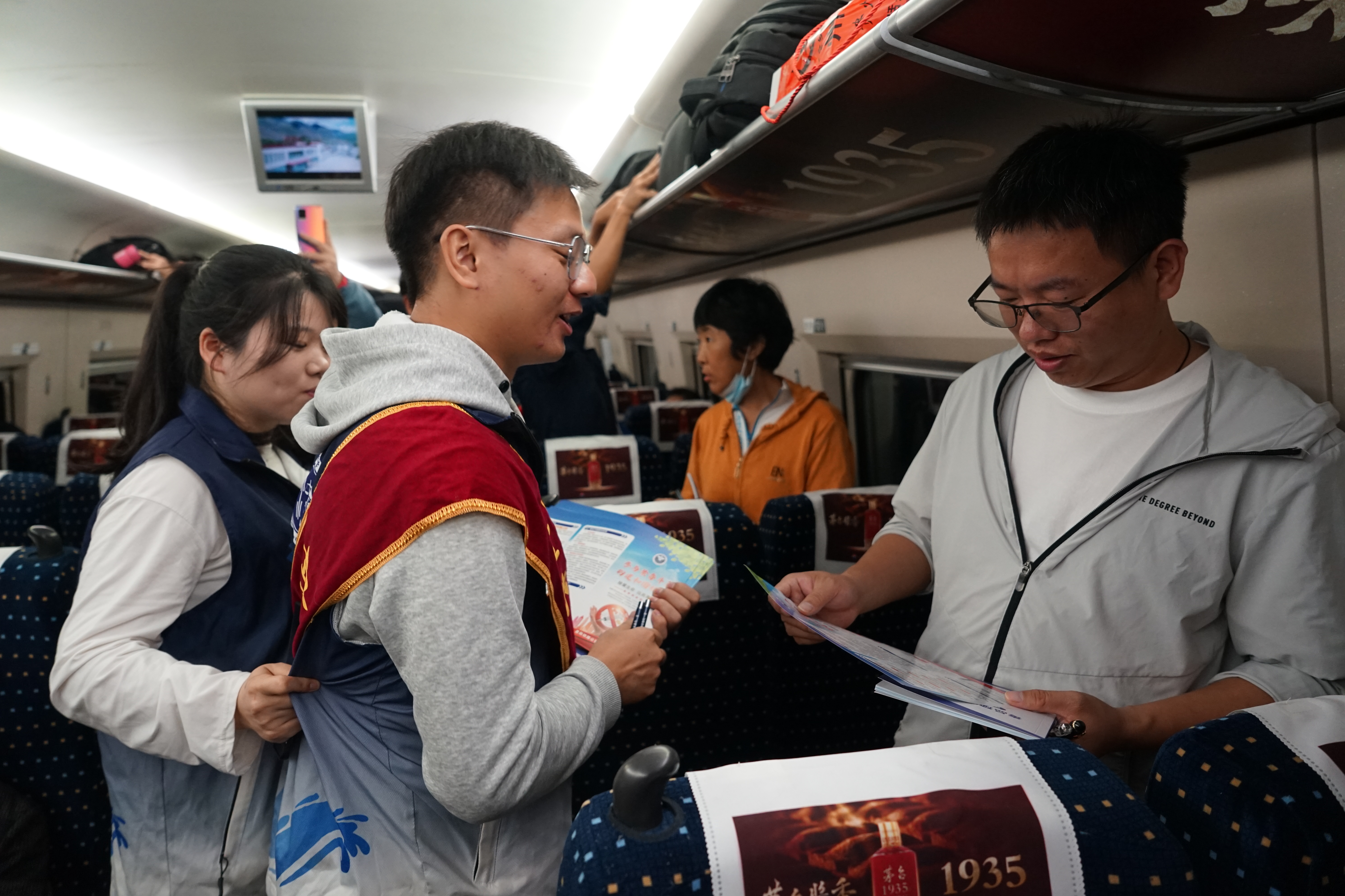 (法学院 冯青青 报道|摄影 胡健)6月25日,在第37个“6.26”国际禁毒日来临之际,法学院教工第二党支部教师党员代莉莎,研究生第一、二党支部硕士研究生党员陈磊、相浩天、胡健、冯青青积极行动,响应禁毒号召,在贵阳北站向旅客进行禁毒普法宣传。