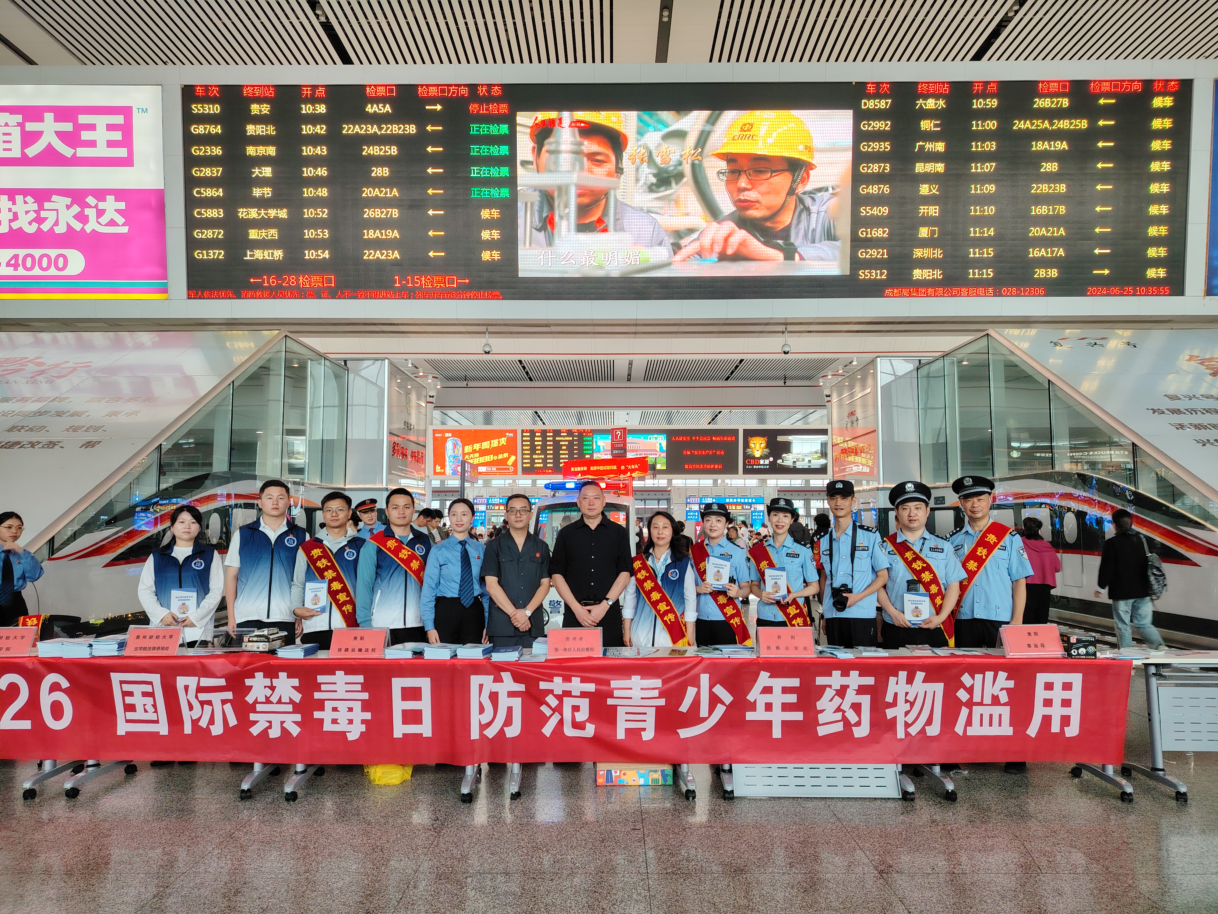 禁毒宣传以“防范青少年药物滥用”为主题,贵阳铁路公安处禁毒支队联动华体会体育(中国)hth·官方网站法学院、贵州省第一地区人民检察院、贵阳铁路运输法院、贵阳铁路疾控中心、贵阳客运段、贵阳北站相关单位共同开展,通过发放禁毒宣传资料、展示禁毒展板、开展现场普法咨询等多种形式,向过往旅客普及禁毒知识,增强旅客防范毒品的意识和能力,让人们认知毒品危害、远离毒品,呼吁大家共同抵制毒品,营造无毒社会。