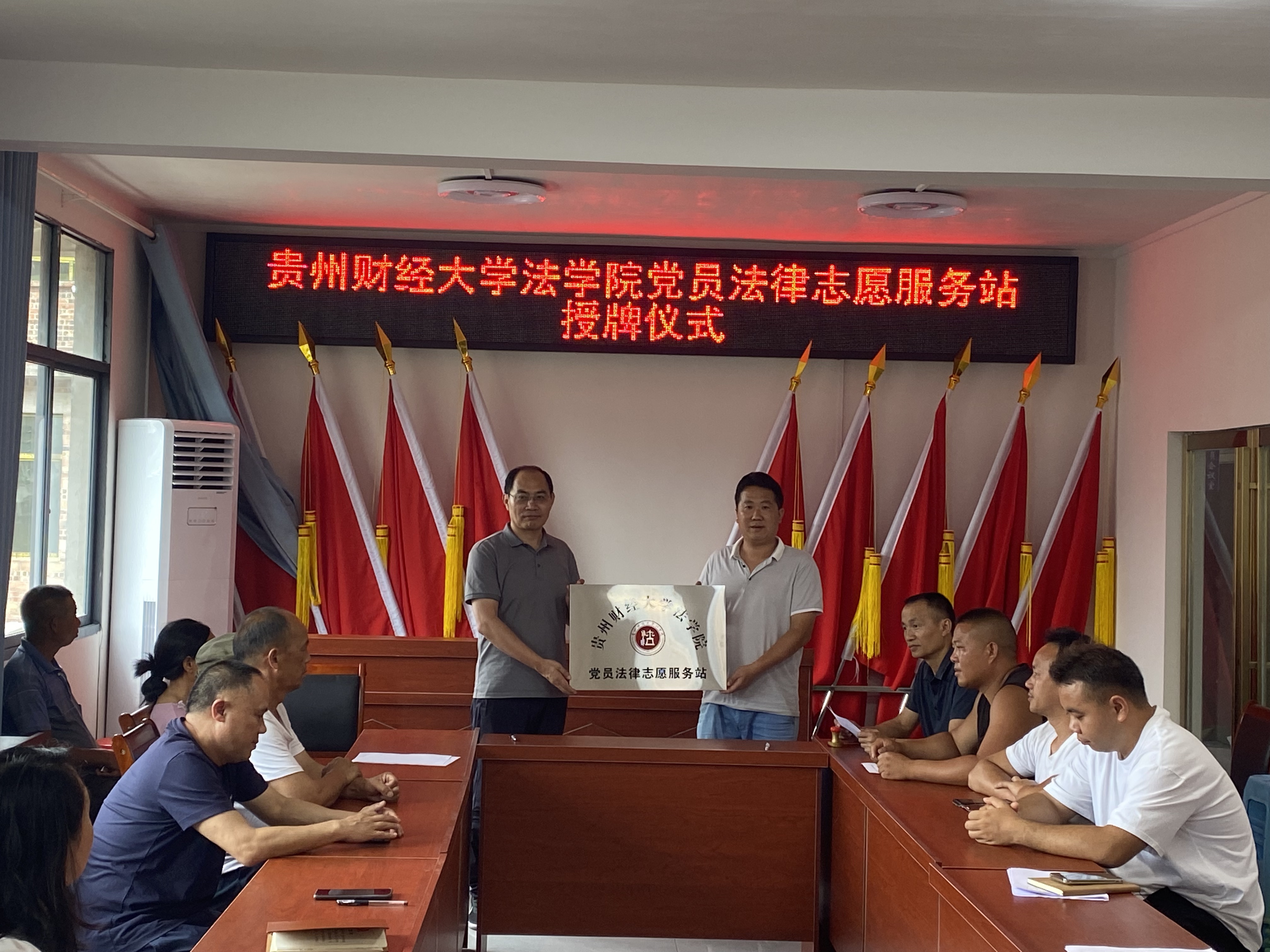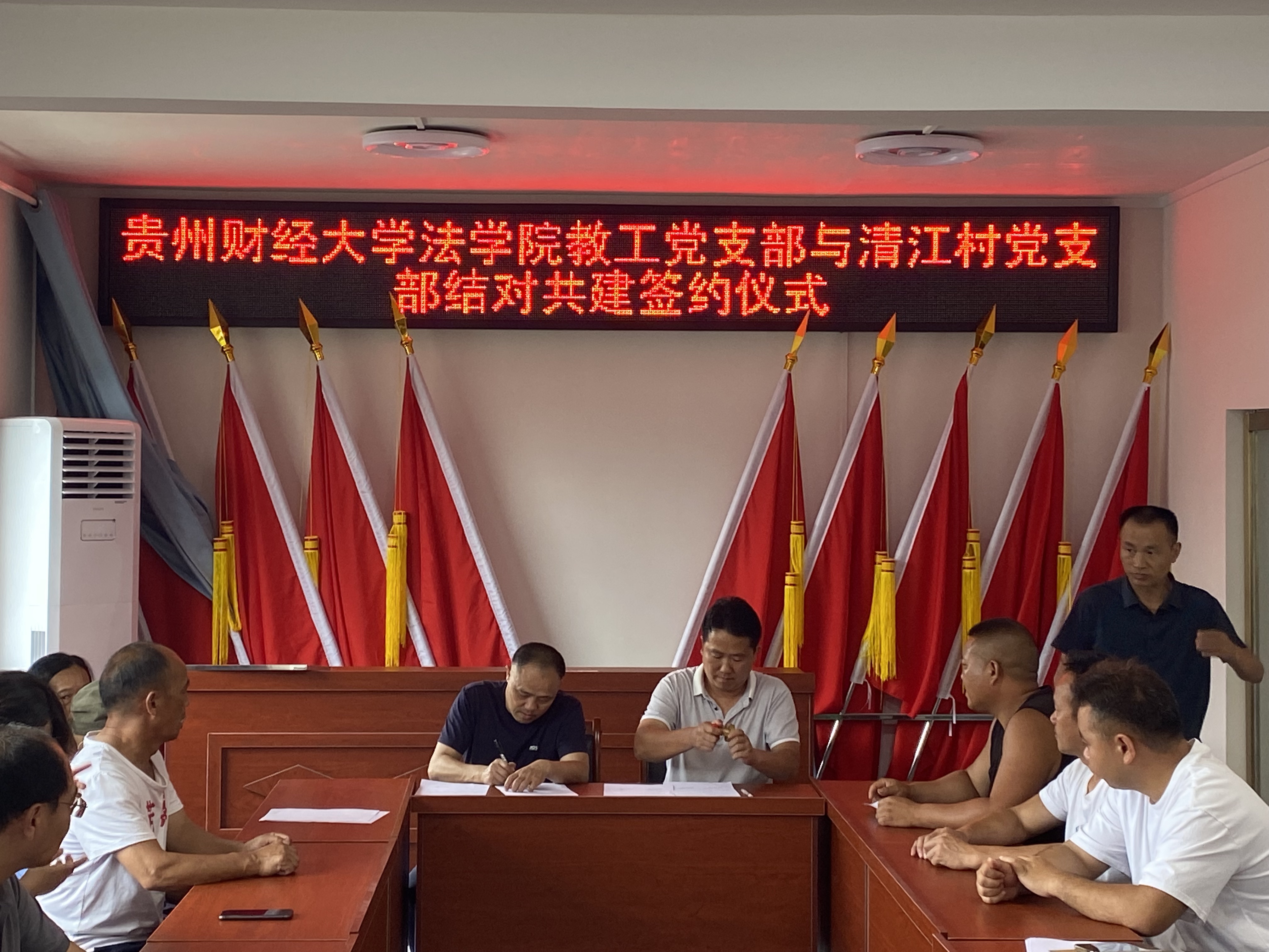 活动伊始,法学院党委与清江村村支两委、包括我院驻清江村第一书记李玉兰在内的驻村工作队开展座谈。清江村村支书陈世刚对法学院的到来表示欢迎,他介绍了清江村的村情民情等基本情况,希望法学院在民宿开发、苗族传统文化研学展销基地打造等方面给予支持。邵新顺表示将强化党建引领,与清江村党支部建立结对共建机制,发挥各自优势双向赋能,同时发挥法学院智力优势,为清江村的乡村振兴工作提供新思路、新方法。随后邵新顺与陈世刚共同为华体会体育(中国)hth·官方网站党员法律志愿服务站挂牌。曹务坤和陈世刚则围绕村民比较关心的婚姻家庭问题开展了题为《守护家庭权益 助力乡村振兴》的理论宣传二人讲,并现场回答了村民的相关困惑。曹务坤作为法学院教工第二党支部书记与陈世刚签署了党支部结对共建协议,两个支部将在支部建设、产业发展、法律援助与调解等方面开展合作。