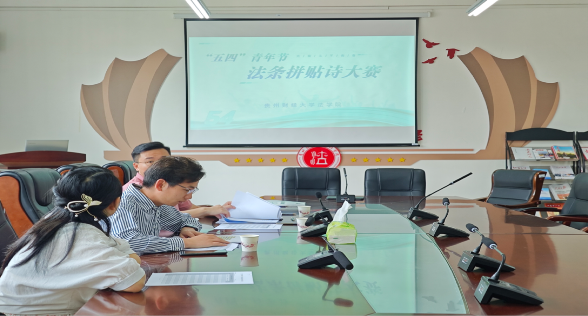 (法学院 图文/报道 韩琳)2024年4月19日上午,华体会体育(中国)hth·官方网站“5·4青年节法条拼贴诗”大赛评分工作在文德楼310会议室开展。本次大赛邀请到杨森井、尹训洋、任鹏举三位博士作为评委。