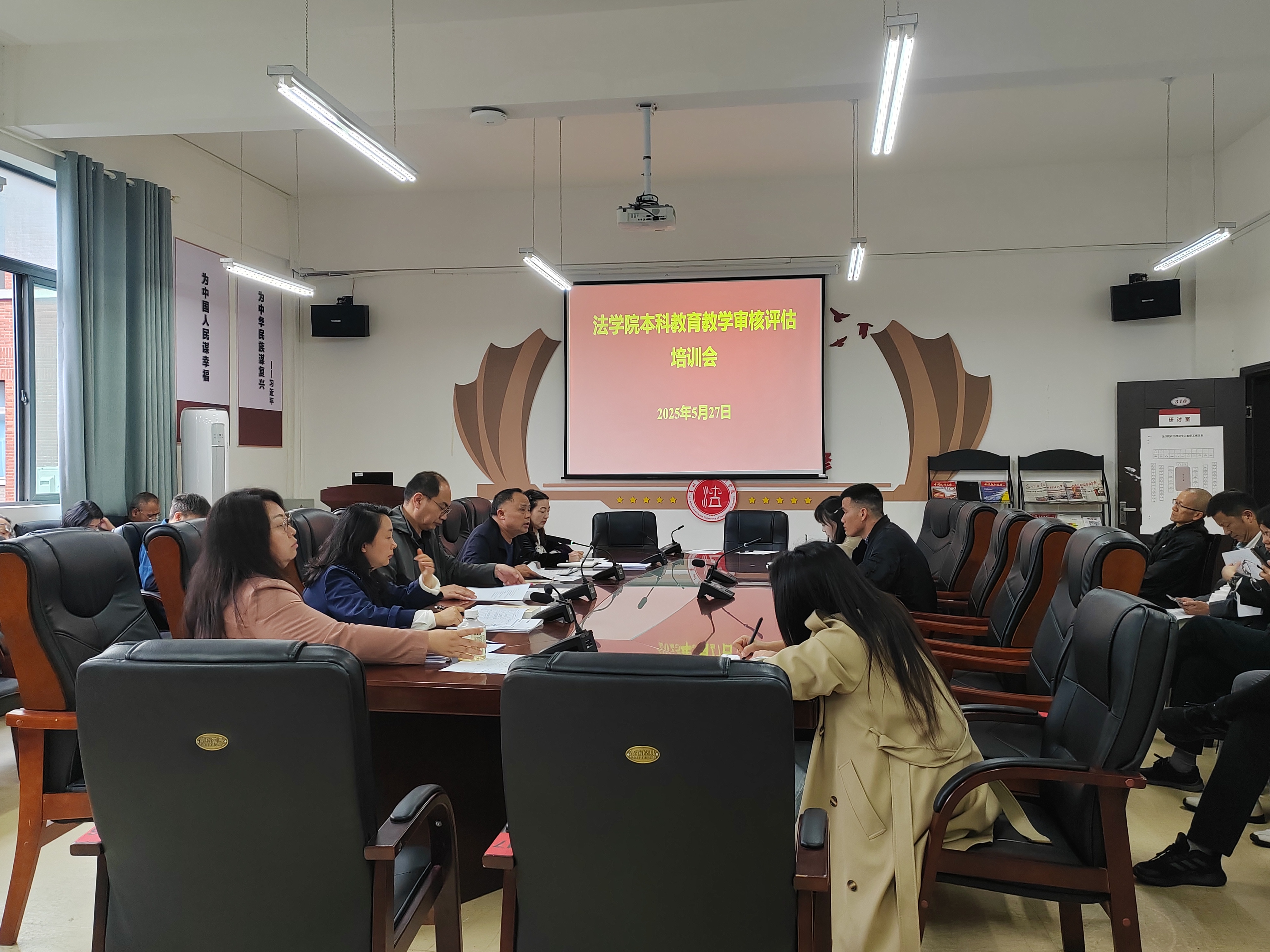 (法学院 图文)5月27日下午,法学院在文德楼310会议室召开本科教育教学审核评估应知应会培训会。学院领导、全体教职工参加培训,会议由党委委员、副院长(主持工作)曹务坤主持。