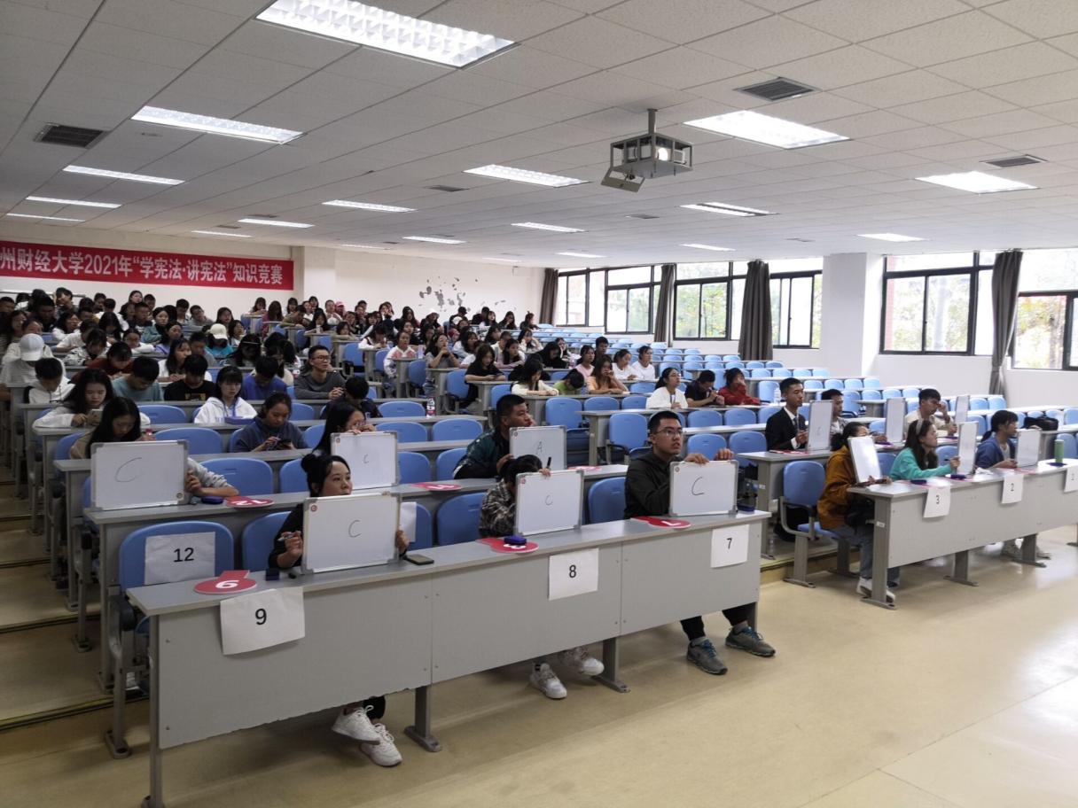 为深入开展以宪法为核心的法治宣传和教育,加强对华体会体育(中国)hth·官方网站法治思想的学习贯彻,不断提高华体会体育(中国)hth·官方网站学生法律意识,引导学生深入遵崇宪法、学习宪法。10月9日上午,华体会体育(中国)hth·官方网站在乐学楼1-1教室举行2021年“学宪法 讲宪法”知识竞赛。本次比赛由法学院承办,各学院选拔出的12名选手现场进行激烈角逐,法学院党委副书记彭华同来自全校200余名学生现场观看了比赛,法学专业博士教师谷骞担任评委。