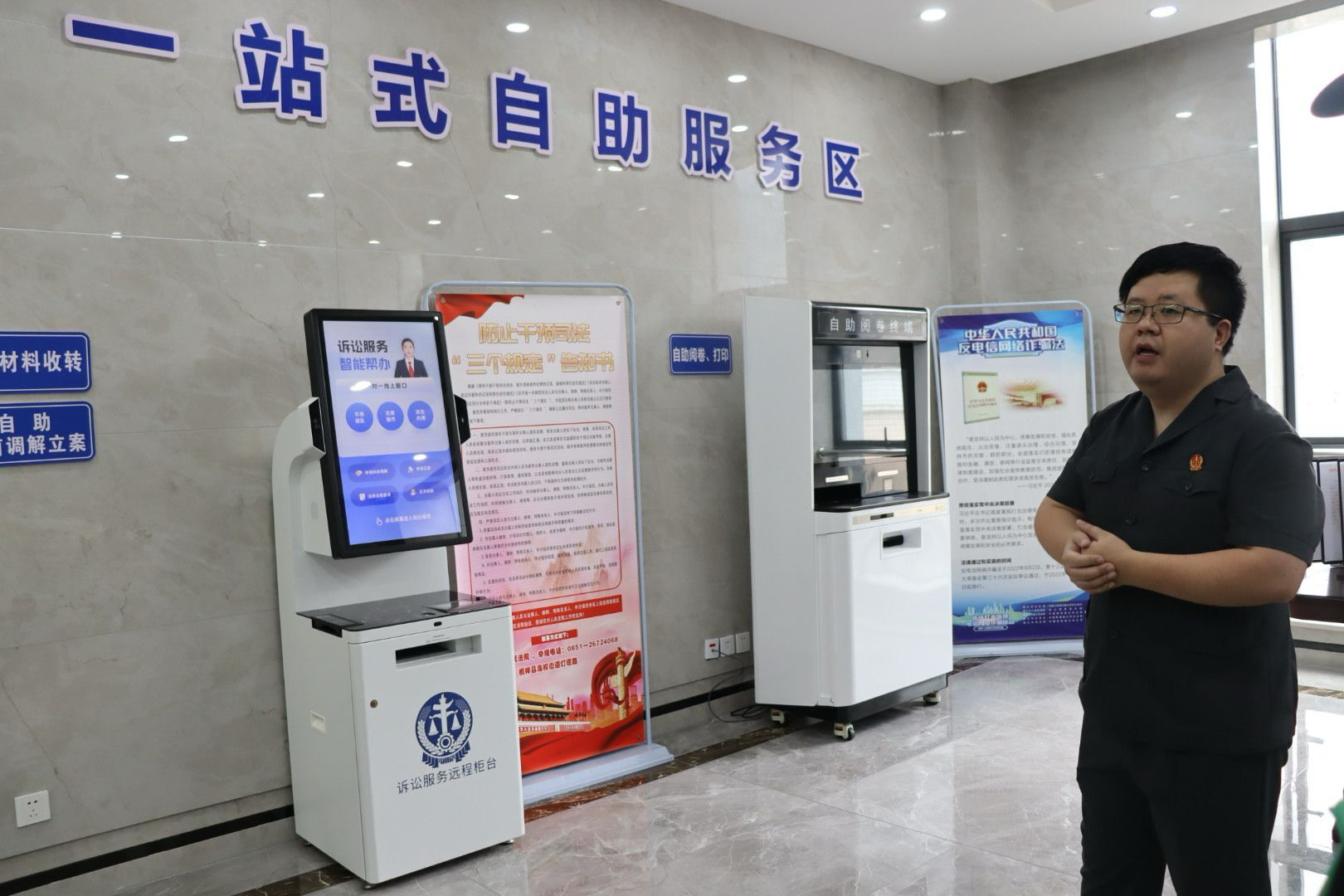 高效便捷的一站式诉讼服务、现代化的审判体系……在桐梓县人民法院,法学院师生依次对诉讼服务中心职能、法院工作内容及流程和司法便民利民的举措都有了直观的了解,感受到作为第一批试点智慧法院的科技力量。