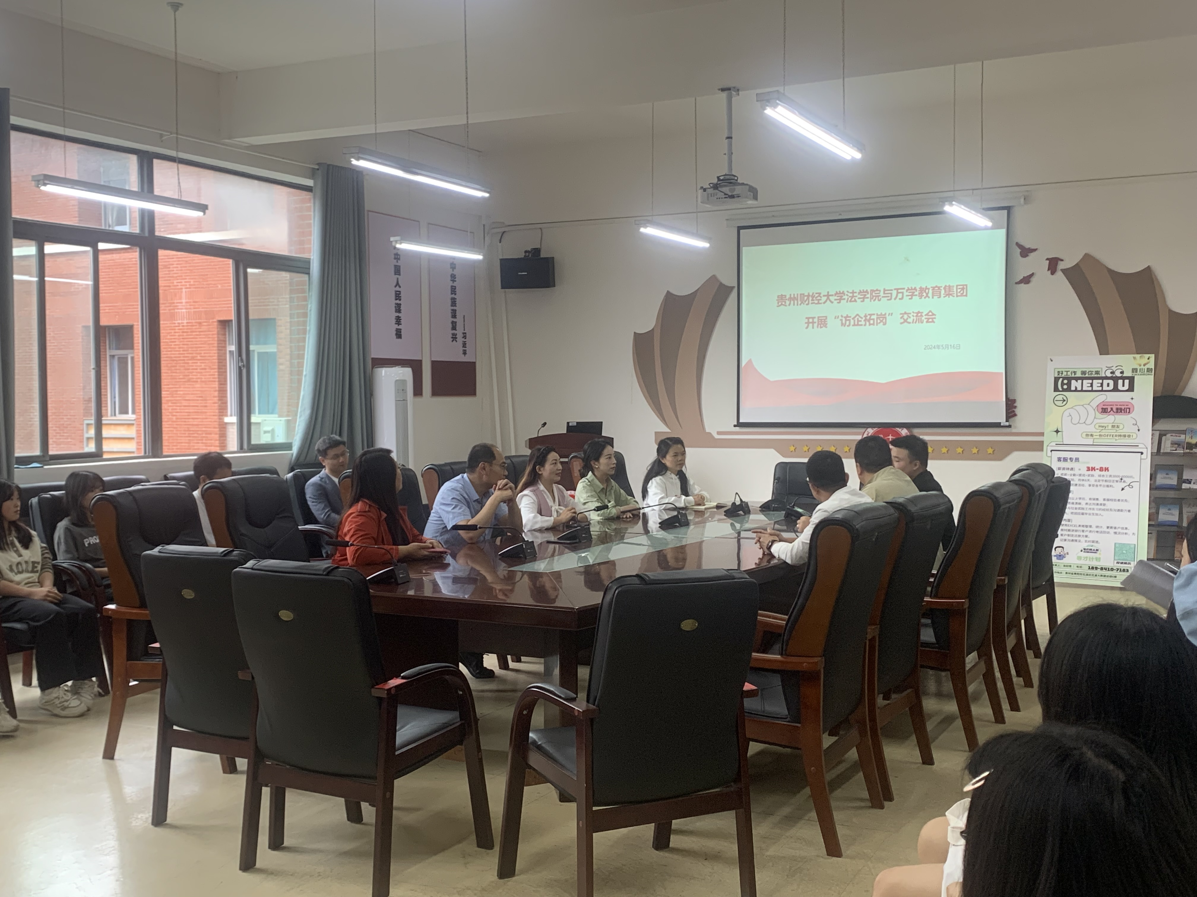 5月16日,法学院邀请到广州鑫心融企业管理信息咨询服务有限公司贵阳分公司、万学教育集团来学院举办访企拓岗交流会。5月17日,法学院和大数据统计学院邀请到贵州小飞酒业集团、贵州小飞通用航空公司、贵州亚港气体有限公司、贵州省群升置业有限公司、贵州生升地产、贵州翰林教育咨询有限公司等6家民建会员企业来校举办访企拓岗交流会,在座谈会上,双方就企业的招聘需求、如何实现协同联动等问题交换了意见,法学院希望通过不断探索,与企业建立长效的人才培养合作机制,为企业输送更多的优秀人才。