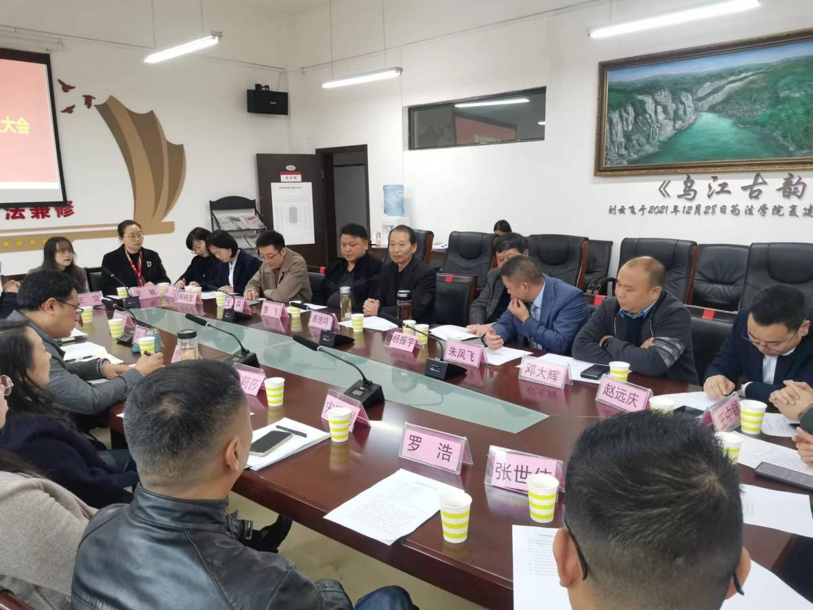 (法学院 图文/报道 向涛 王浩翔 王馨莹 )2022年11月22日上午10点,贵州财经大学校友会法学院分会成立大会在文德楼310会议室举行。本次会议由法学院党委书记詹伟主持,法学院副书记、院长陈玉梅,正处级专职组织员兼纪委书记代莉莎,副书记彭华,副院长宋昭澜、副院长曹务坤以及法学院教师代表、法学院各届校友代表共20余人参会。