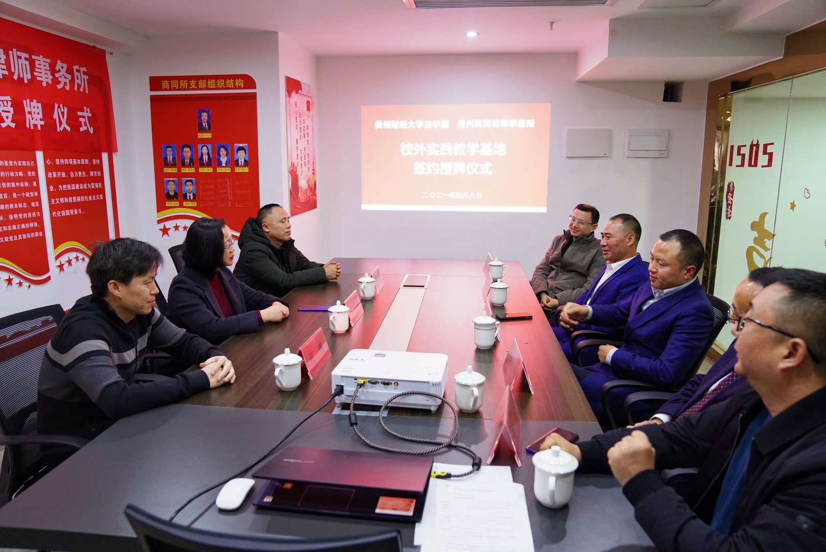2021年4月8日,华体会体育(中国)hth·官方网站与贵州商同律师事务所校外实践教学基地签约暨授牌仪式在观山湖区贵州商同律师事务所举行,华体会体育(中国)hth·官方网站副院长陈玉梅教授、院长助理曹务坤教授、何鹏博士,贵州商同律师事务所在所的高级合伙人冉政林、王军、邓世军、陈佳、石磊参加签约既授牌仪式,并举行了座谈。