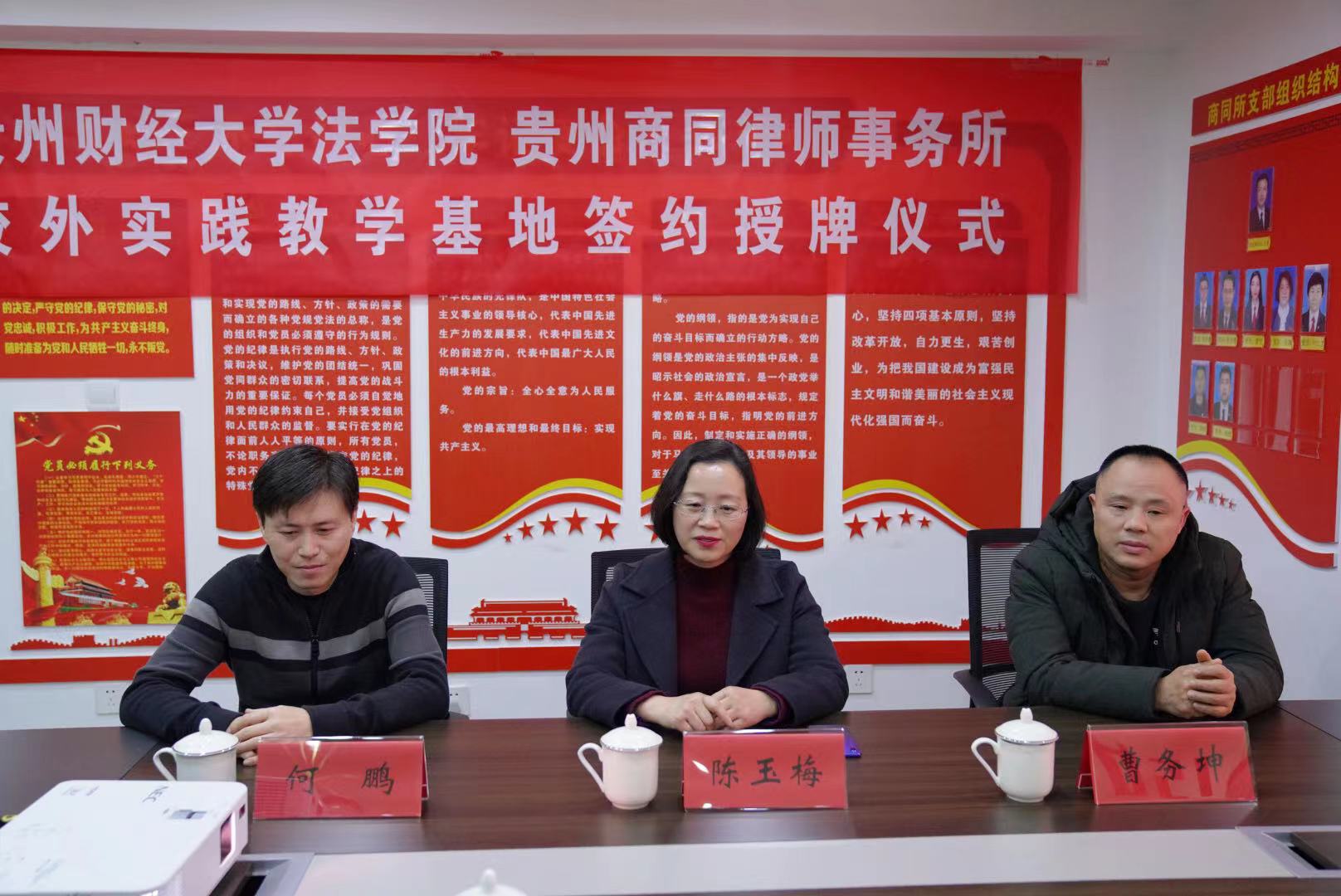 贵州商同律师事务所主任冉政林表示,以设立校外实践教学基地为切入点,会充分利用本所律师曾经从事法院审判、检察院审查起诉及贪贿案件侦查、公安刑事侦查、司法行政、企业法律事务等工作经历,结合从事律师行业以来的理论与实践,加强与华体会体育(中国)hth·官方网站在学生实习、案例教学、模拟法庭等各项教研方面的密切合作,丰富教学内容,协助推动教学创新。曹务坤教授、何鹏博士,高级合伙人邓世军、陈佳、石磊分别做了交流发言,一致希望通过设立校外实践教学基地的方式,加强双方交流与合作,让校外实践教学形式多样化,务求取得实实在在的的效果。