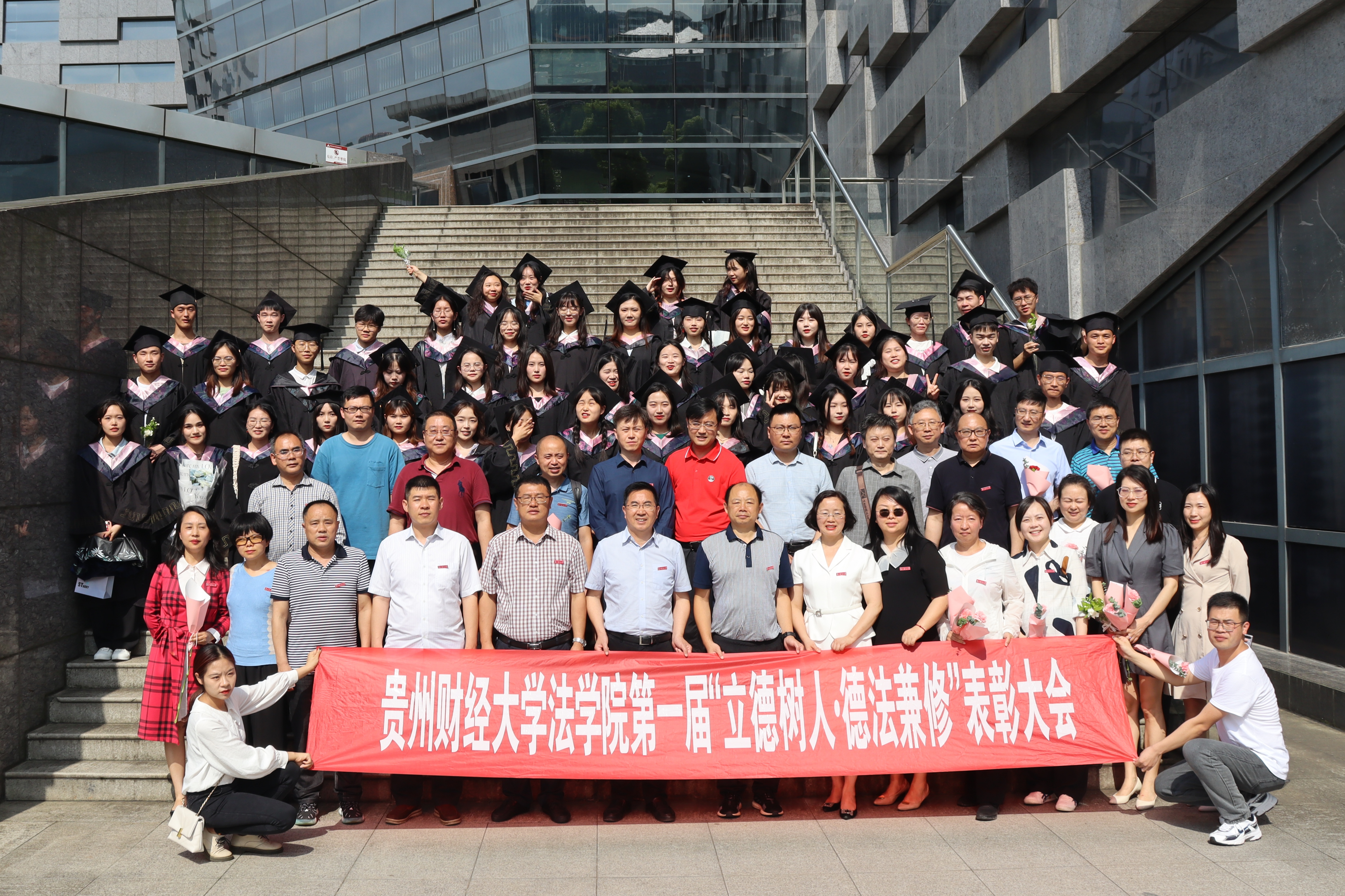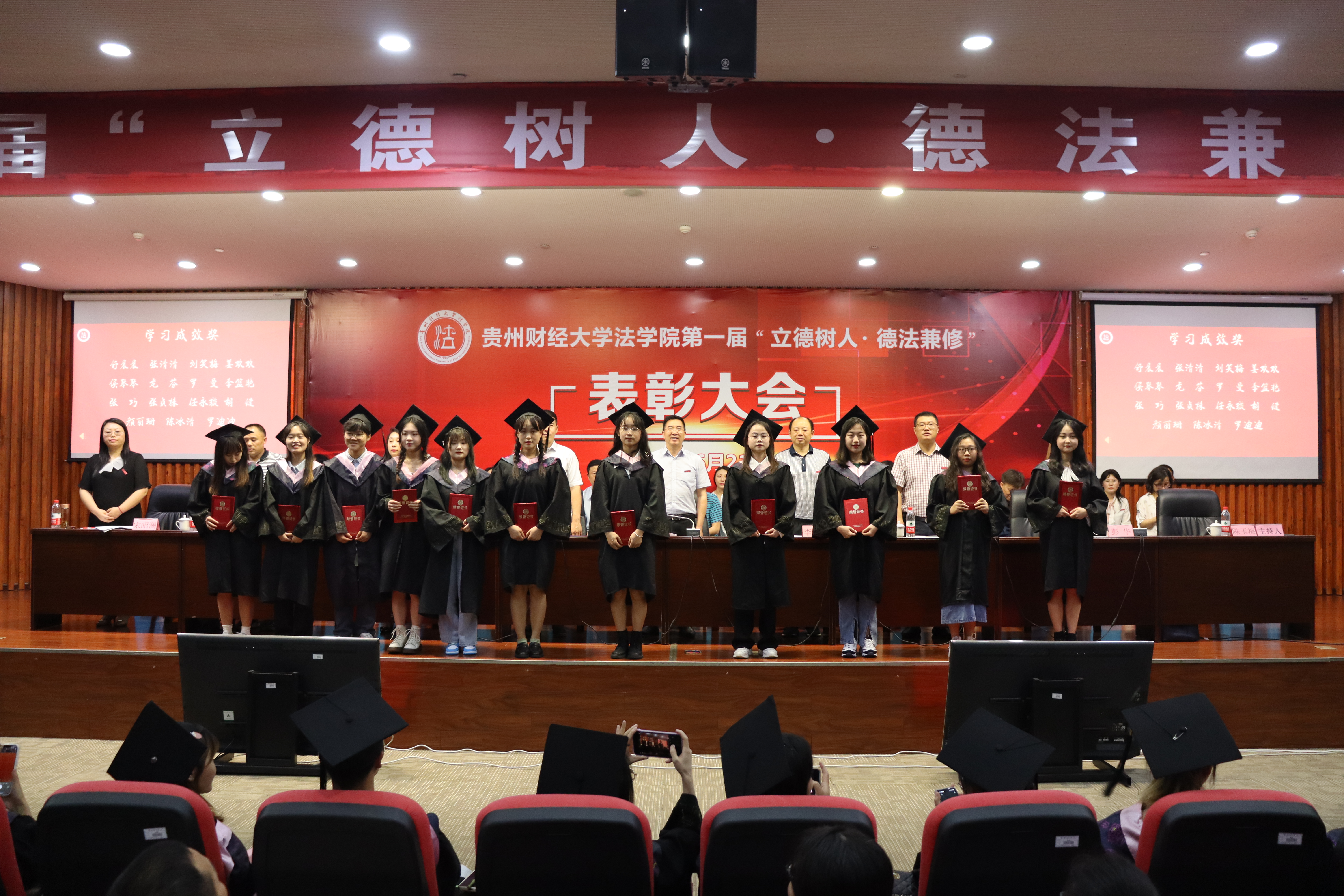 在第二篇《立标引路 树型育人》中,法学院党委副书记兼纪委书记代莉莎宣读了表彰决定,朱克乾、李汉文、刘希磊和学院党委委员对胡甲庆等4名教师和张清清等39名学生颁发了获奖证书。