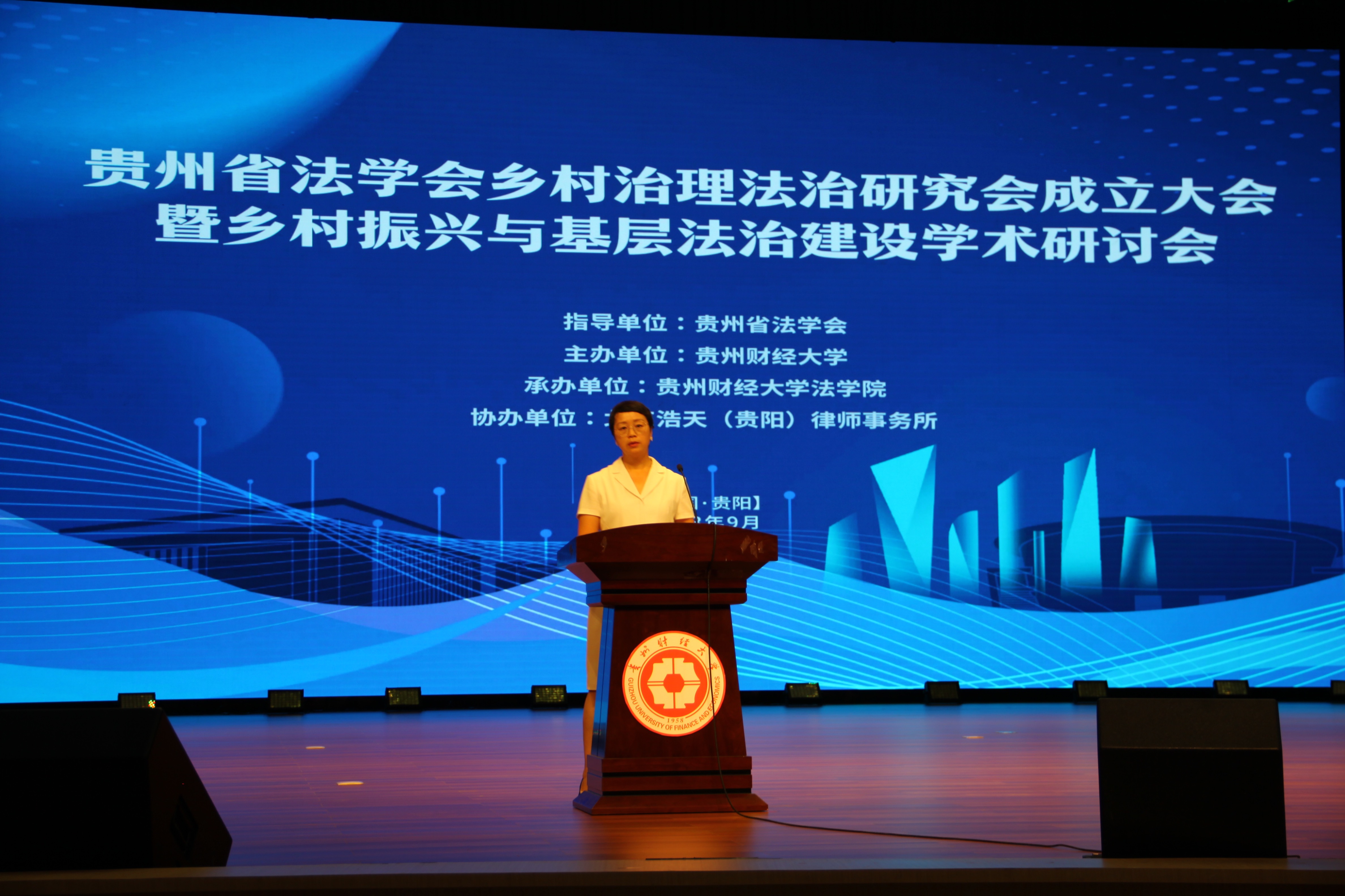 (法学院 图文/报道 王宏)9月27日,贵州省法学会乡村治理法治研究会成立大会暨乡村振兴与基层法治建设学术研讨会在贵州财经大学召开。贵州财经大学党委委员、副校长李汉文致欢迎辞,贵州省法学会专职副会长兼秘书长王占霞、贵州省社会科学院二级研究员吴大华出席会议并致辞,华体会体育(中国)hth·官方网站院长陈玉梅主持会议。相关领导、嘉宾、研究会会员、学术论文作者等200余人参加会议。
