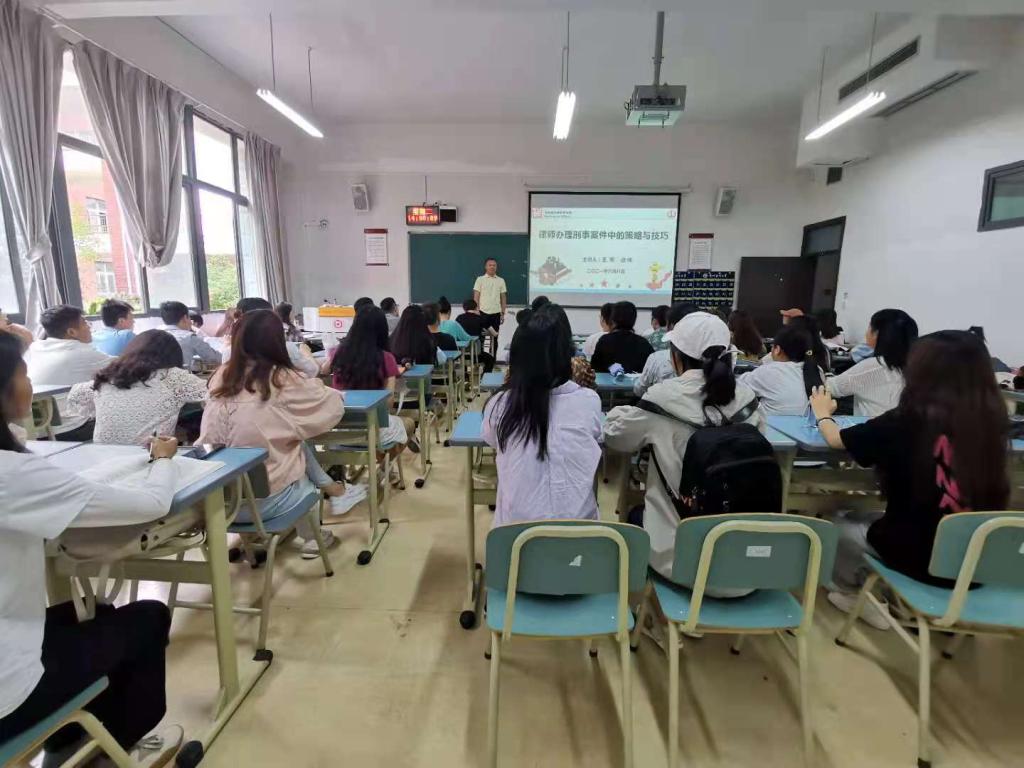 法学院通过“师生座谈、为群众办实事”,了解到学生对于法律专业知识学习的需求外,急需法律实务相关知识的补充。为增强学生的法律实务相关知识,提高学生的法律实务水平,法学院于6月8日在博学楼1-10特邀贵州商同律师事务所合伙人王军(贵州省人民检察院专家咨询委员、贵阳市人民监督员、贵阳市人民检察院专家委员会委员、听证员)作“律师办理刑事案件中的策略与技巧”的专题讲座。讲座由何鹏老师主持,法学院研究生导师王霖和辅导员杨兴莉列席,我院60余名本科生和研究生参加。